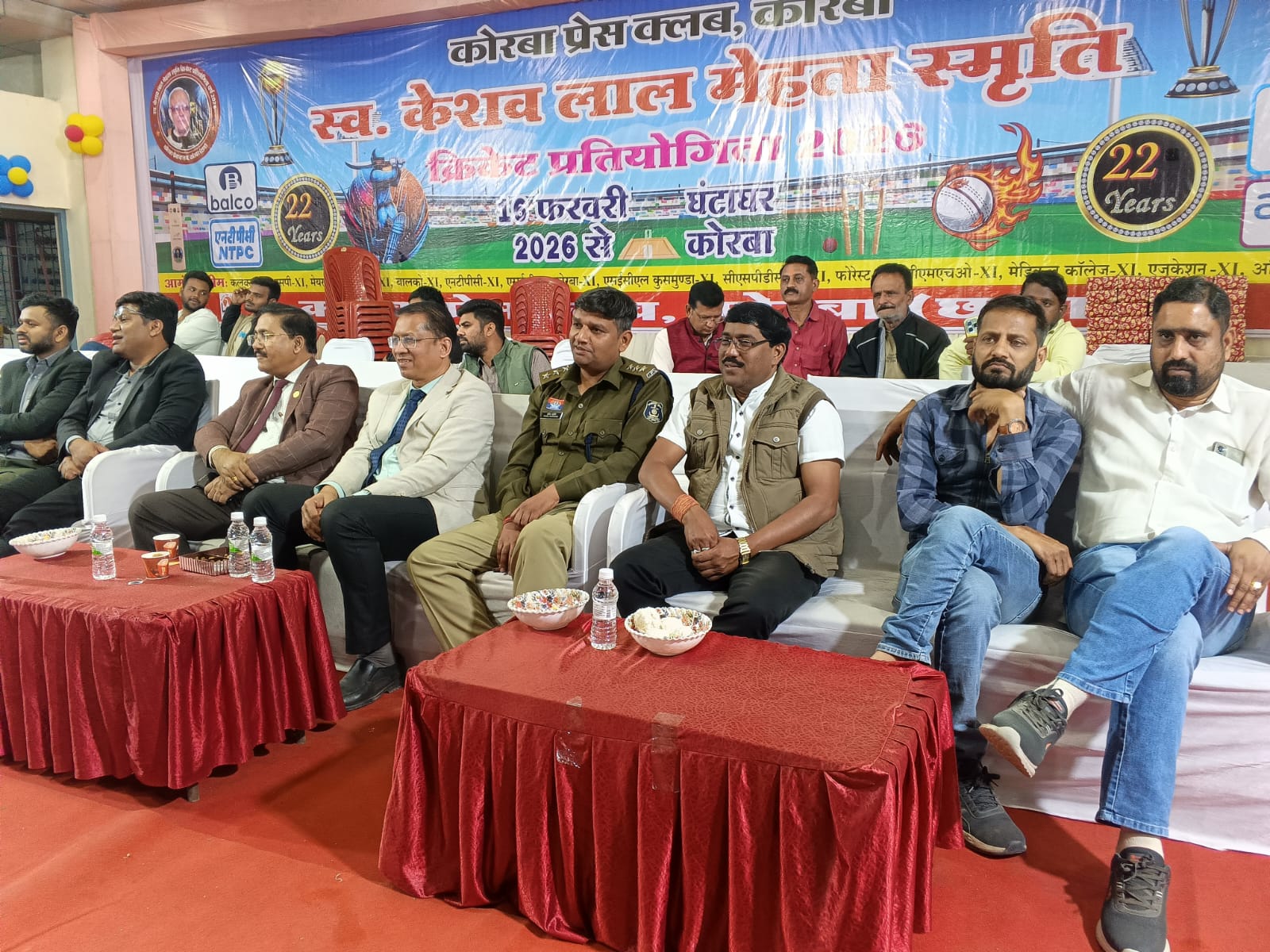 कोरबा- स्वर्गीय केशव लाल मेहता स्मृति क्रिकेट प्रतियोगिता 2026 के तीसरे दिवस एसपी 11 और मेडिकल कॉलेज की टीम के बीच मैच खेला गया। कार्यक्रम के मुख्य अतिथि मेडिकल कॉलेज के डीन डॉ. केके सहारे रहे। विशिष्ट अतिथियों में मेडिकल कॉलेज के सीएस डॉ. गोपाल कंवर, अस्पताल अधीक्षक डॉ रविकांत जाटवर, अतिरिक्त पुलिस अधीक्षक नीतिश ठाकुर, नगर पुलिस अधीक्षक प्रतीक चतुर्वेदी की उपस्थिति रही। इस अवसर पर डॉ सहारे ने खिलाड़ियों की हौसला अफजाई करते हुए कहा कि प्रतियोगिता में हार जीत तो होती है, लेकिन असली विजेता वही है जो मैदान पर उतरता है। मैदान में उतरने वाला हर एक खिलाड़ी विजेता होता है। उन्होंने प्रेस क्लब के आयोजन की सराहना करते हुए कहा कि वरिष्ठ पत्रकार स्वर्गीय केशव लाल मेहता कि स्मृति में आयोजित यह प्रतियोगिता एक अनूठी पहल है। विशिष्ट अतिथियों ने कहा कि कोरबा प्रेस क्लब 22 वें वर्ष यह आयोजन कर रहा है।आयोजन के लिए प्रेस क्लब परिवार बधाई का पात्र है। प्रतियोगिता में पहले बल्लेबाजी करते हुए एसपी 11 की टीम ने 7 विकेट के नुकसान पर 113 रन बनाए। लक्ष्य का पीछा करने उतरी मेडिकल कॉलेज की टीम निर्धारित 10 ओवर में 6 विकेट खोकर 81 रन ही बना सकी। इस तरह एसपी 11 की टीम ने 32 रन से मुकाबला जीत लिया। एसपी 11 की ओर से घातक गेंदबाजी करने वाले इरफान खान (7 देकर 3 विकेट) को मेन ऑफ द मैच के खिताब से नवाजा गया। घंटाघर ओपन ऑडिटोरियम मैदान क्रिकेट प्रेमियों से भरा रहा। कार्यक्रम में प्रेस क्लब कोरबा के पदाधिकारी, कार्यकारिणी सदस्य, प्रेस क्लब सदस्य, पत्रकारबंधु, सहित गणमान्य नागरिक बड़ी संख्या में उपस्थित थे।